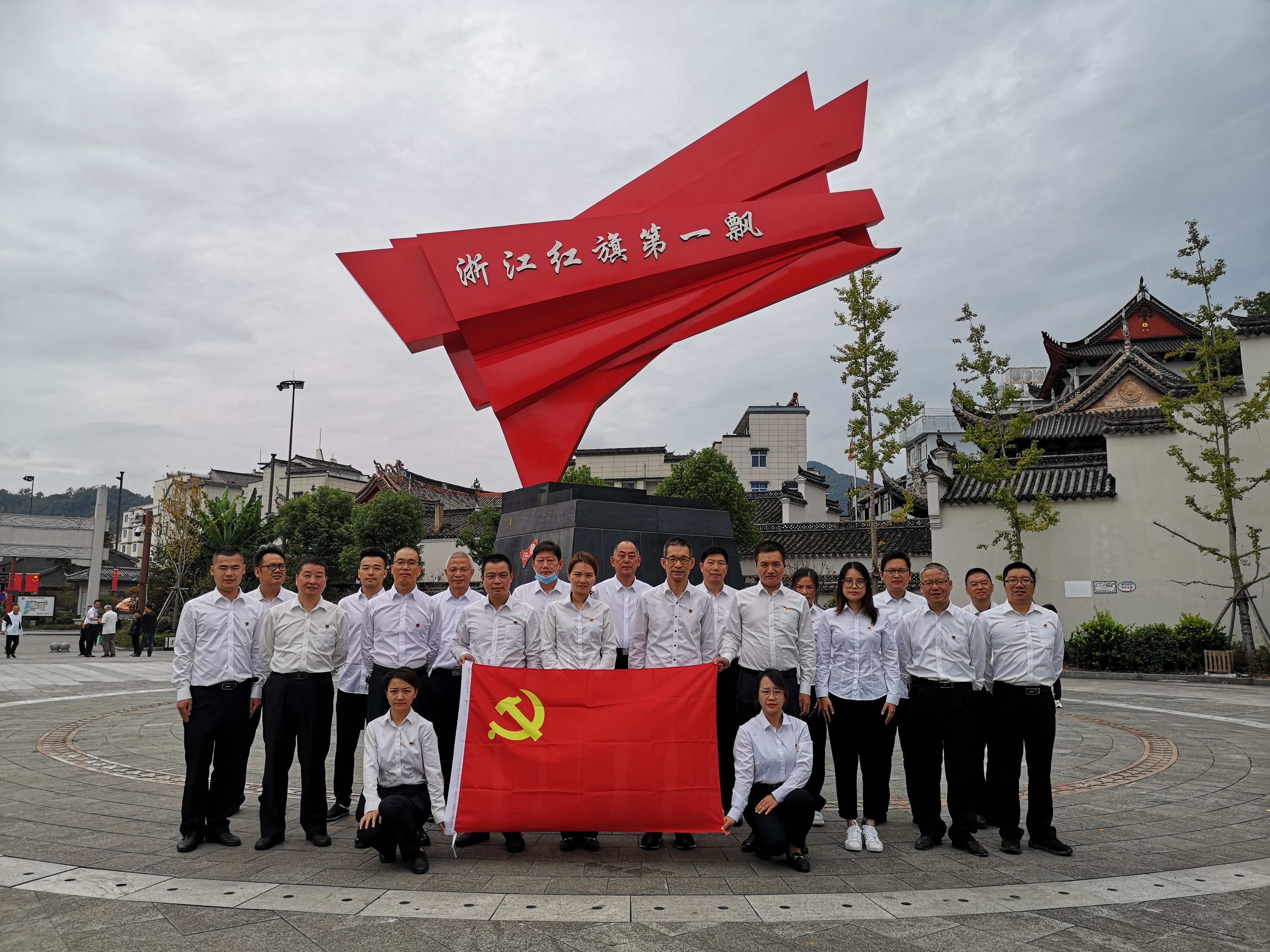 (圖為紀(jì)念碑黨員合影) 亭旁起義打響了浙東武裝奪取政權(quán)的第一槍,建立了浙江第一個蘇維埃政權(quán),被譽(yù)為“浙江紅旗第一飄”。 黨員同志們沿著先烈們的足跡,接受著紅色精神的洗禮。在亭旁起義紀(jì)念碑下,同志們重溫入黨誓詞;在紀(jì)念館,聆聽亭旁起義的歷史;在城隍廟,感受紅色區(qū)域的家國情懷……黨員們紛紛表示,一定會銘記歷史、繼承傳統(tǒng)。