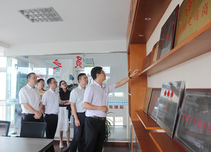 圖為團(tuán)省委基層工作部部長(zhǎng)陳杰一行對(duì)臺(tái)州所取得的榮譽(yù)表示贊賞