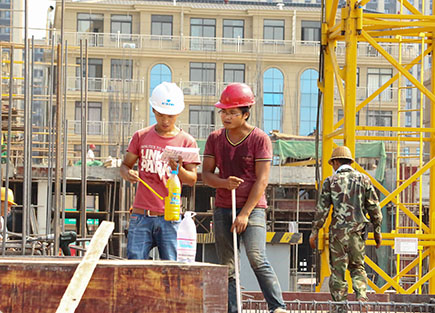 一周以來,我市出現(xiàn)持續(xù)高溫天氣,熱浪侵襲。集團(tuán)下屬子公司仁和房產(chǎn)文鼎苑樓盤施工場地上,白天溫度高達(dá)38℃,地表溫度達(dá)60多℃,頭頂明晃晃的太陽,腳踩炙熱的鋼板和腳手架,兩百多名工人正在忙碌作業(yè)中。他們頭戴安全帽,隨身攜帶一個大容量水壺,脖子上再掛一條濕毛巾,這是他們當(dāng)中大部分人的標(biāo)準(zhǔn)解暑“裝備”。