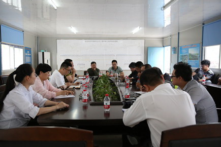 圖為考評組在8#立交項(xiàng)目部匯總反饋檢查問題